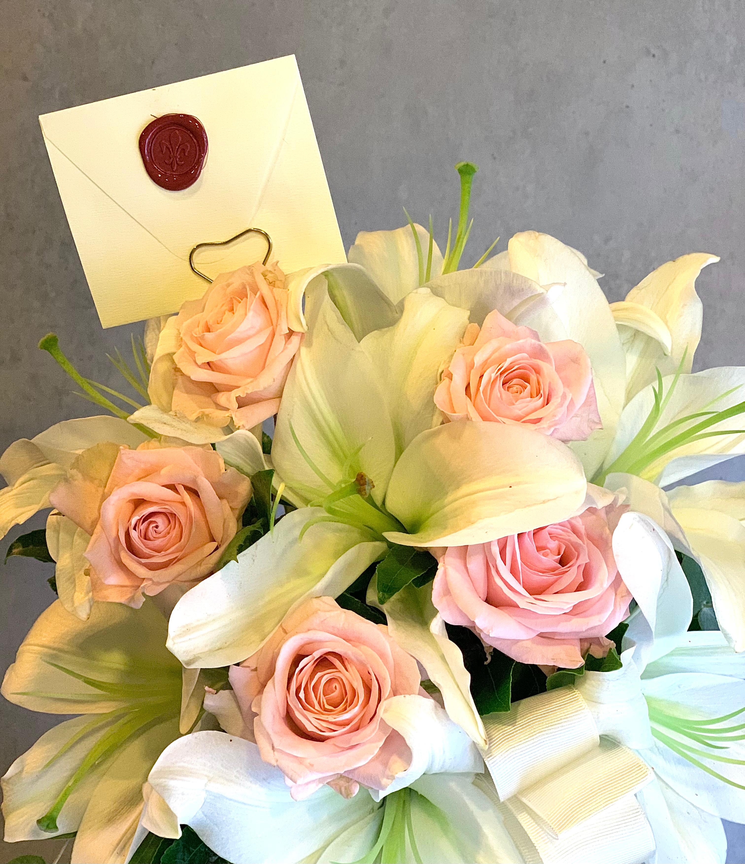 Bestehend aus 5 Zweigen frischer weißer Lilien, ideal für besondere Anlässe wie Geburtstage und Jubiläen.