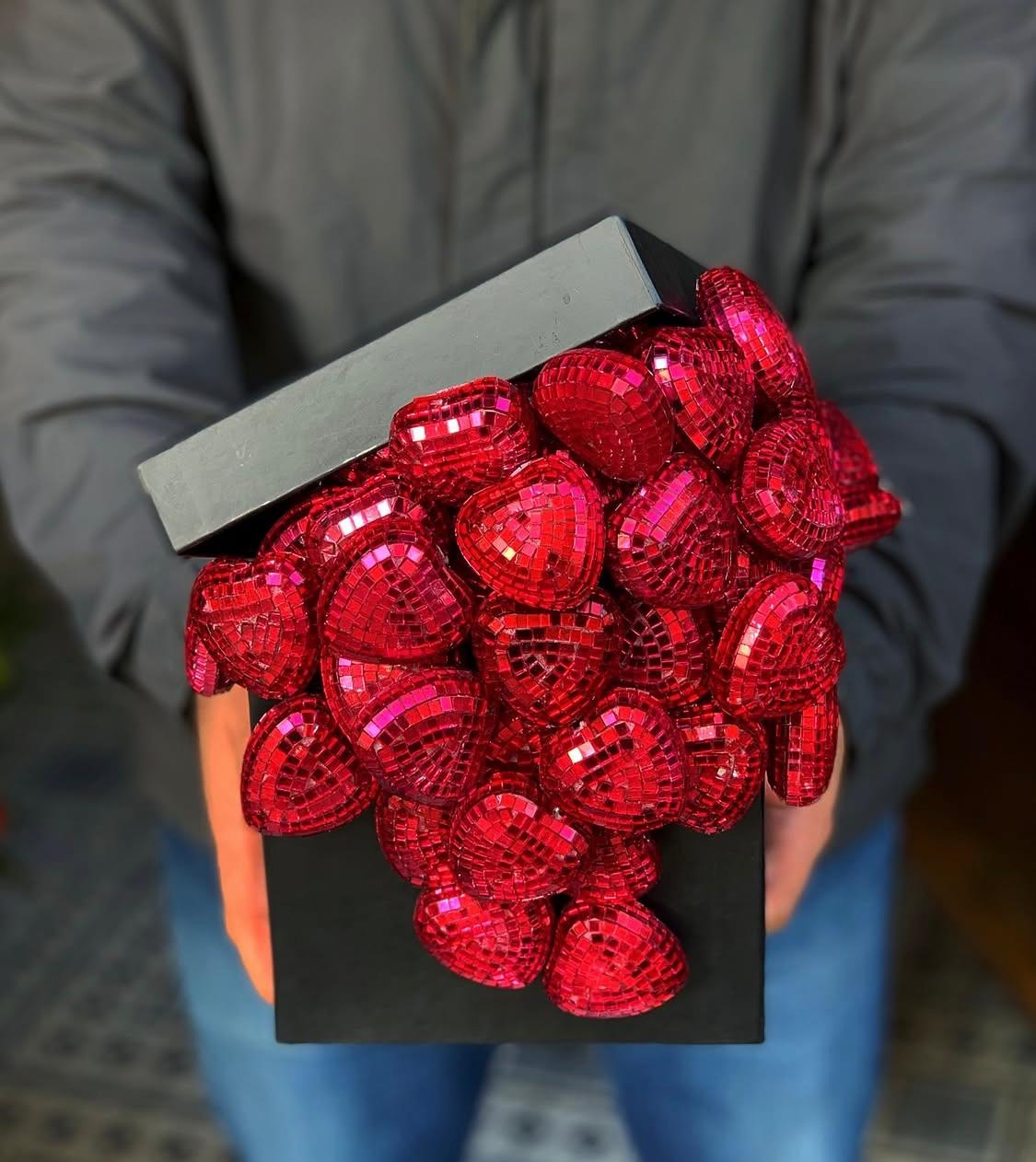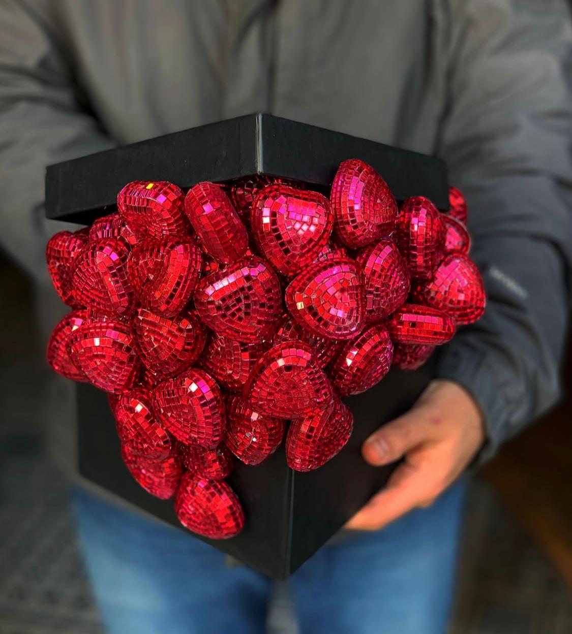 Sıradanlıktan uzak, tamamen el yapımı ve tek bir adet üretilmiş bu özel hediye kutusuyla tanışın. Siyah, şık karton kutu içerisine özenle yerleştirilmiş, parlak kırmızı kalpler, adeta bir sevgi fırtınasını andırıyor. 35 cm büyüklüğündeki bu benzersiz tasarım, sevdikleriniz için unutulmaz ve anlamlı bir hediye arayanlara hitap ediyor.