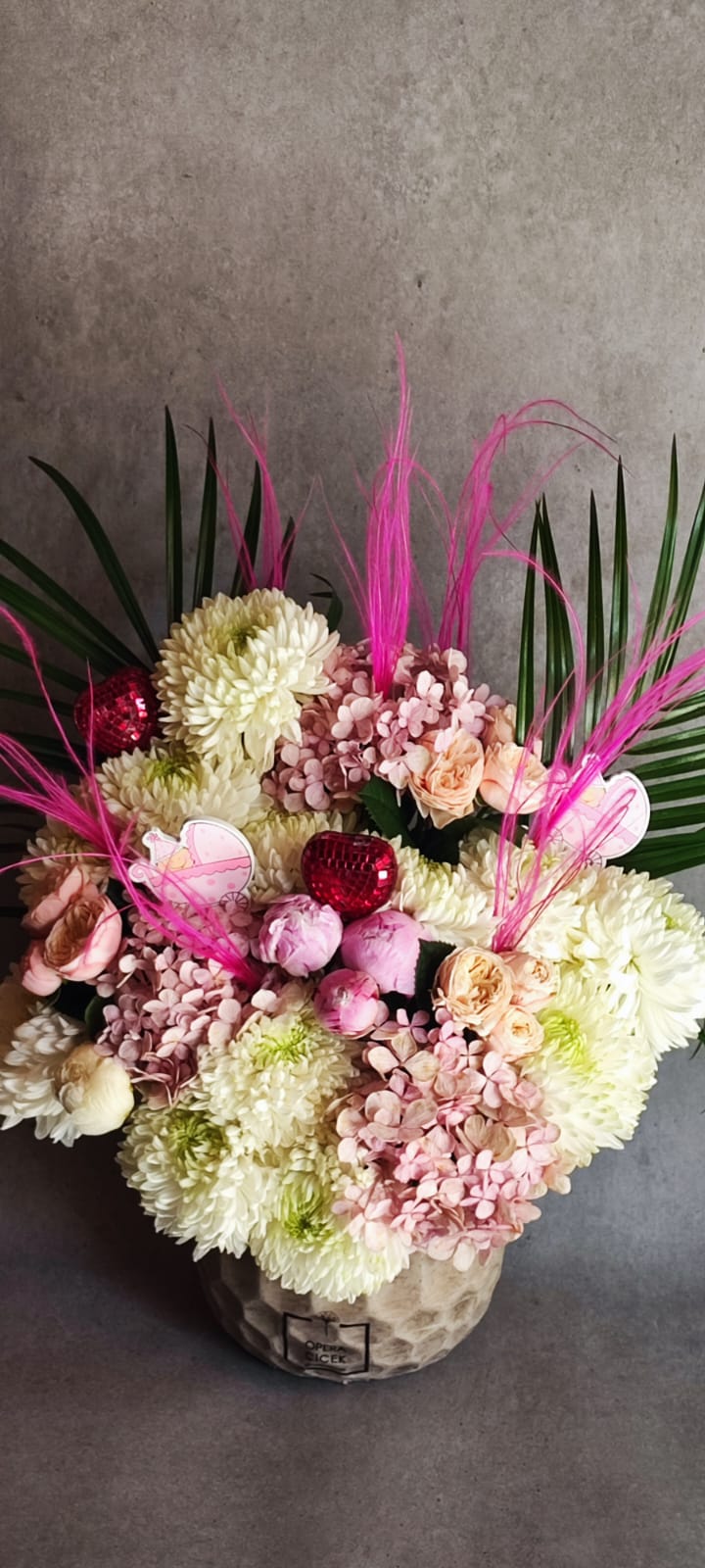 Beyaz Lilyum ve Pembe Gül Aranjmanı