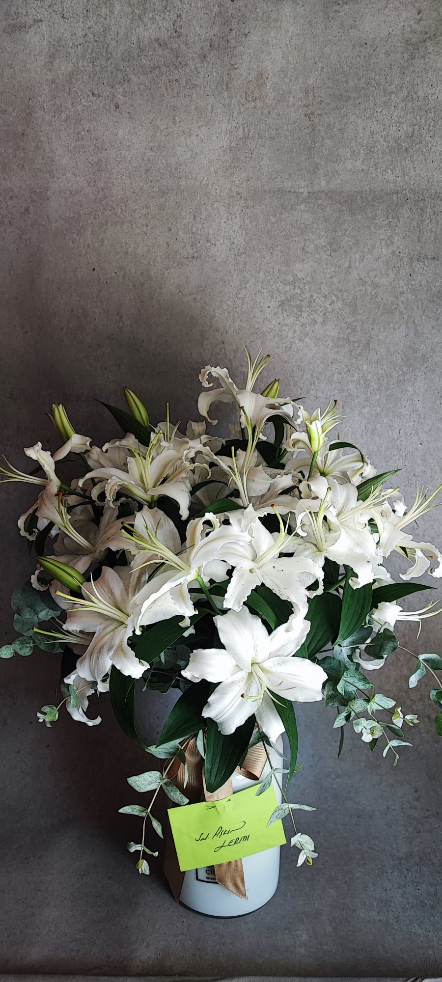 Composé de 5 branches de lys blancs frais, idéal pour les occasions spéciales telles que les anniversaires et les anniversaires.