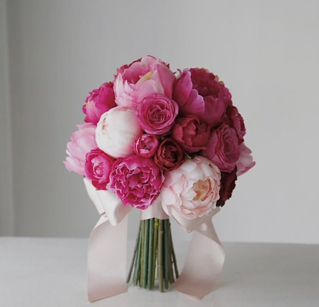 Tamamen canlı pembe şakayıkların zenginliği ve dolgunluğu ile oluşturulmuş bu buket, mutluluğu ve refahı müjdeler. Canlı rengi ve büyük formu, gelinliğinizle güçlü bir kontrast oluşturarak anında dikkat çeker. Şık, bol ve gösterişli bir çiçek arayan gelinler için ideal bir başyapıt."