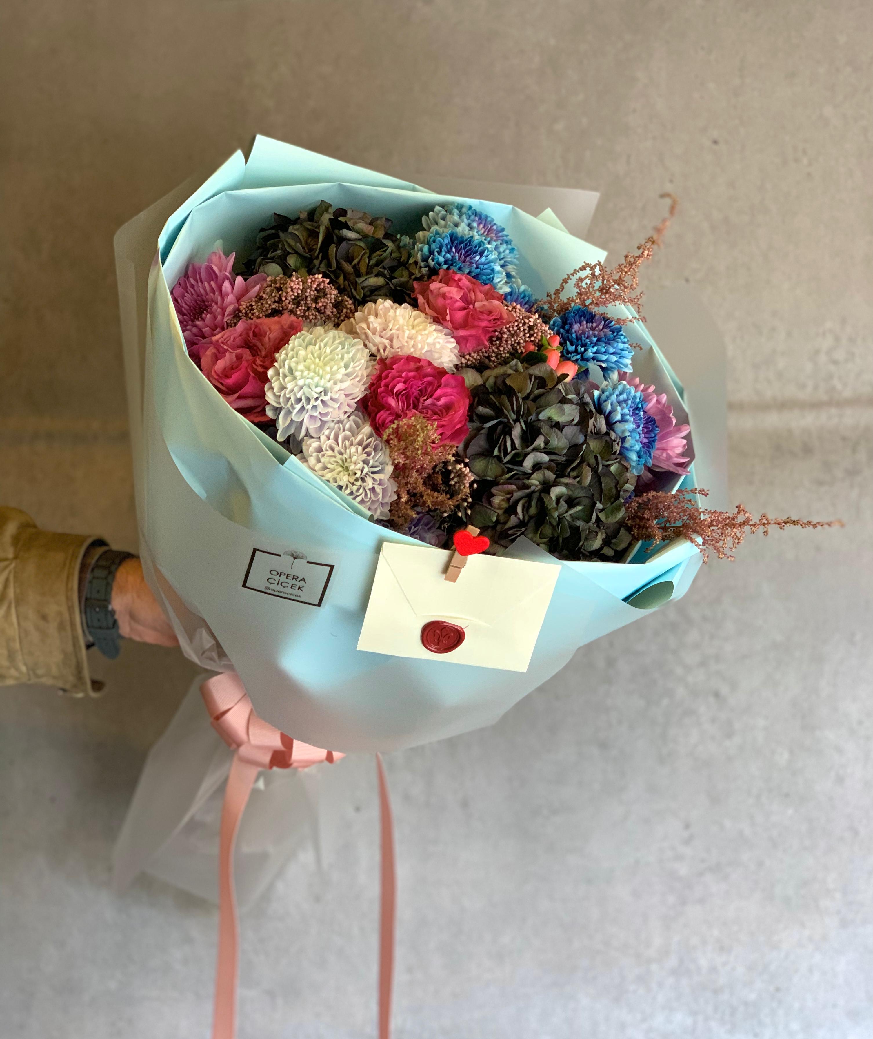 Bakım: Çiçeklerin canlılığını korumak için suyu her iki günde bir değiştirin. Buketi direkt güneş ışığına veya rüzgara maruz bırakmayın.