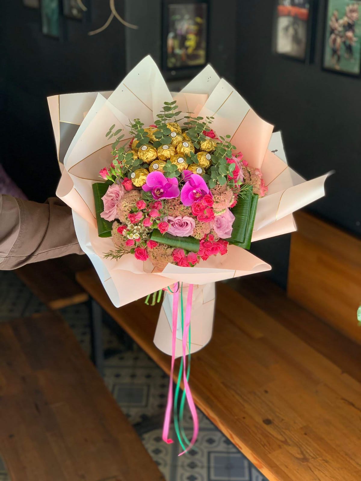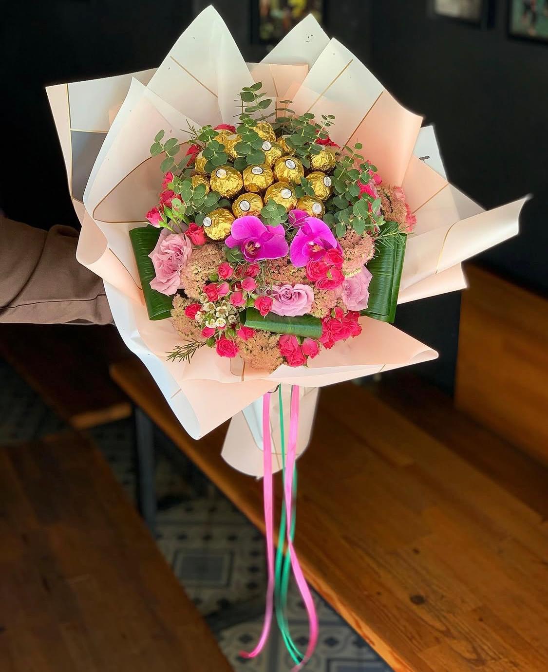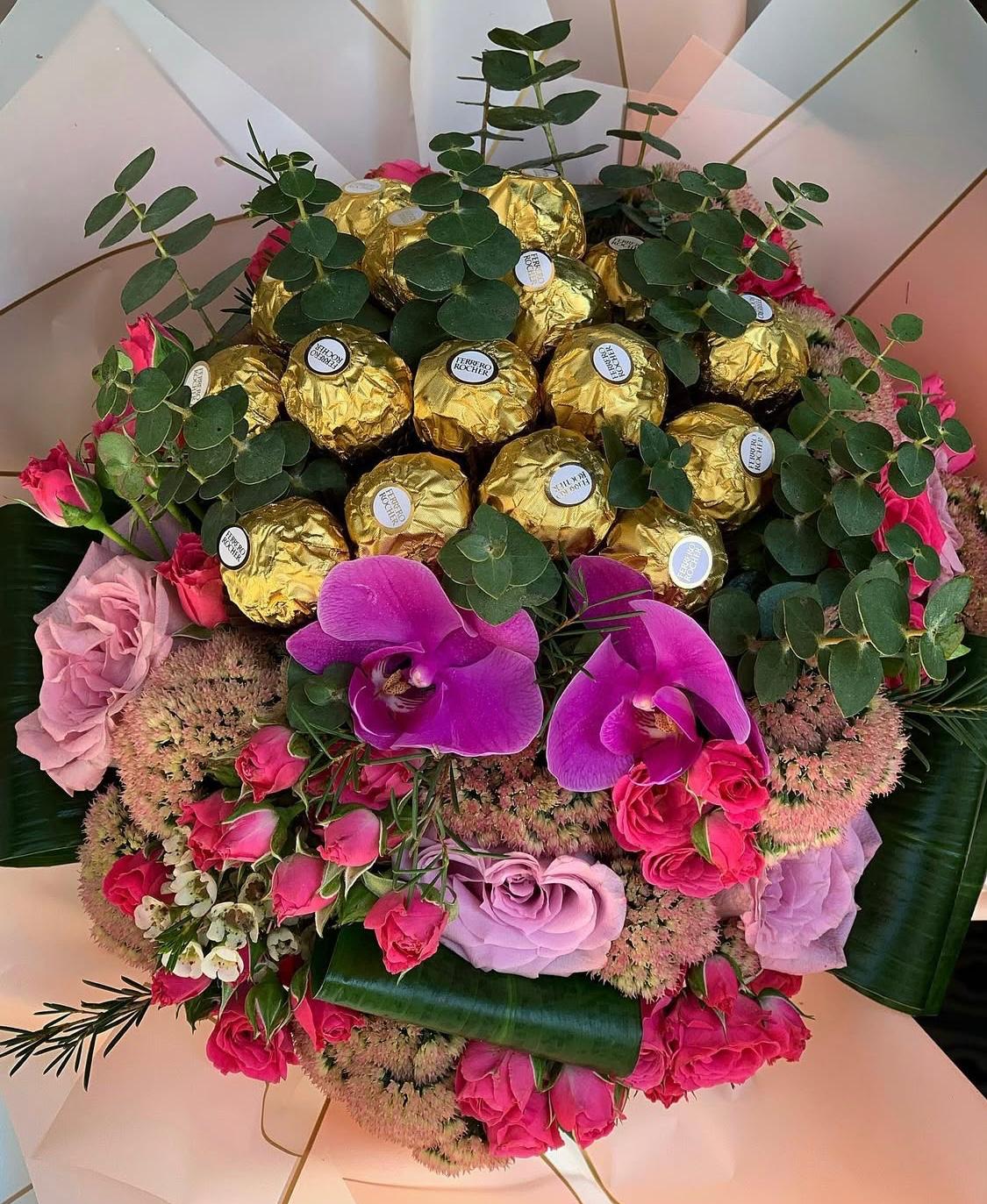 Ferrero Rocher çikolataları, orkide ve gül şıklığıyla birleşti! Tatlı sürprizlerle duygularınızı ifade edin. Hem lezzetli hem zarif bu buket, aşkı ve zarafeti aynı anda suna
